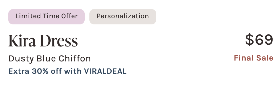 | 1 | 'badge:lightningdeal' tag | "Extra 30% off with VIRALDEAL" |