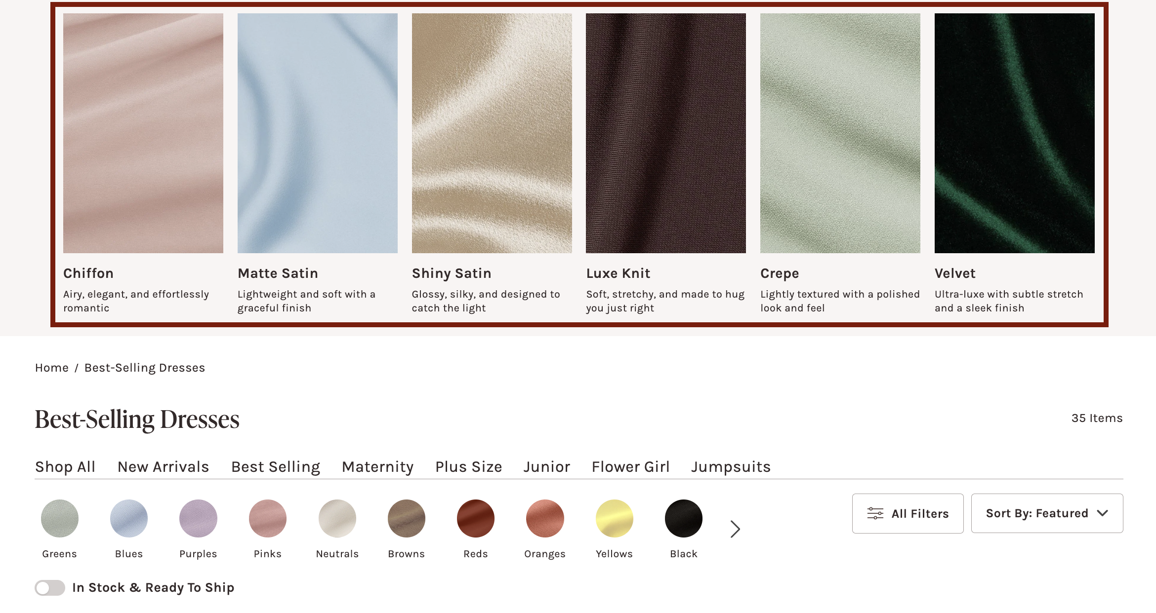 - Function: Displays a sub-navigation showcasing special collections; clicking a collection will navigate the user to that collection page. This component will display between the collection header title and color bar/filter menu bars.